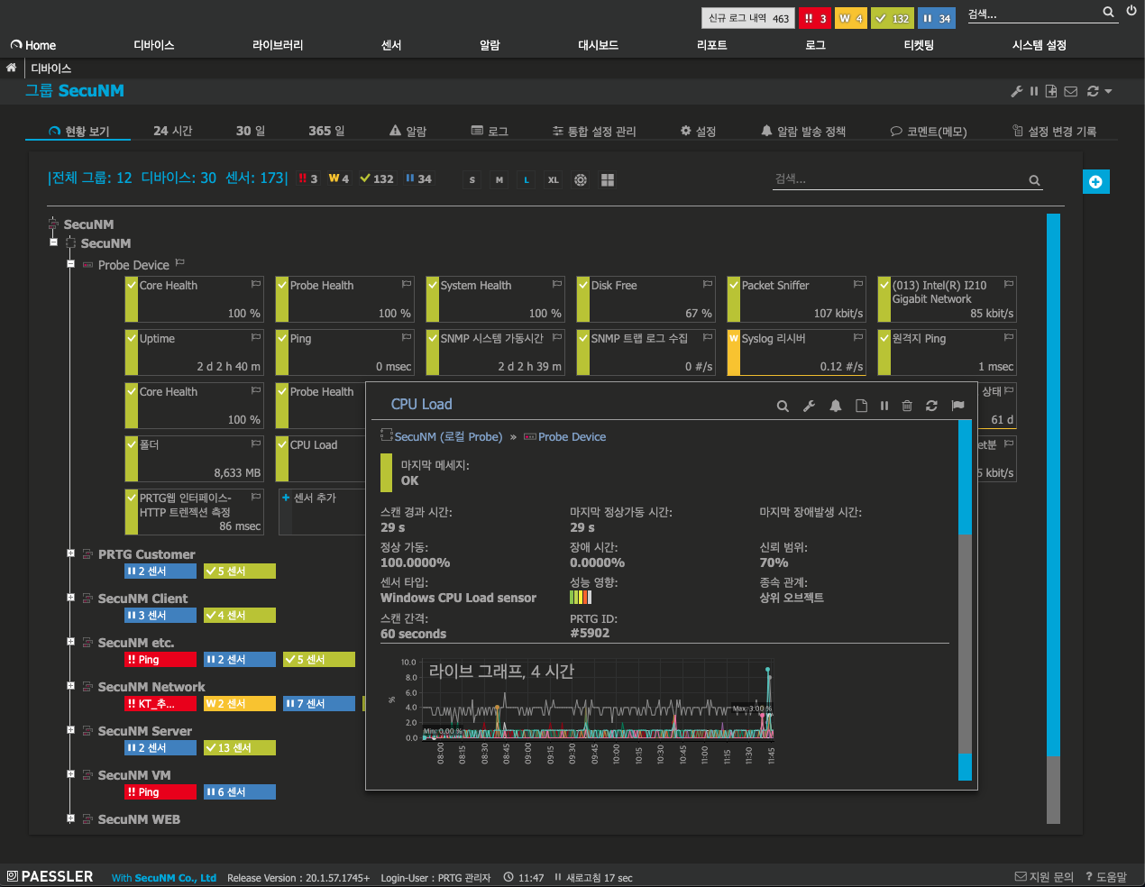 누적되어 이제는 완성화된 독자적인 PRTG 운영 현황을 갖추어 가기 시작했습니다.