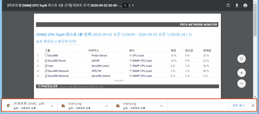 이미지 또는 PDF 문서를 다운로드할시 다운로드 실패 - 네트워크 오류라는 메시지 항목과 함께 다운로드가 불가한 상황이 발생되고 있습니다.