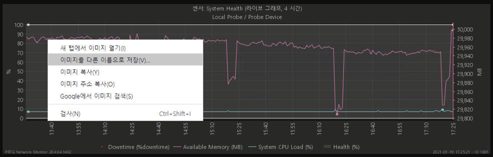 PRTG의 주된 활용의 사항인 그래프 기반의 특성을 통해,