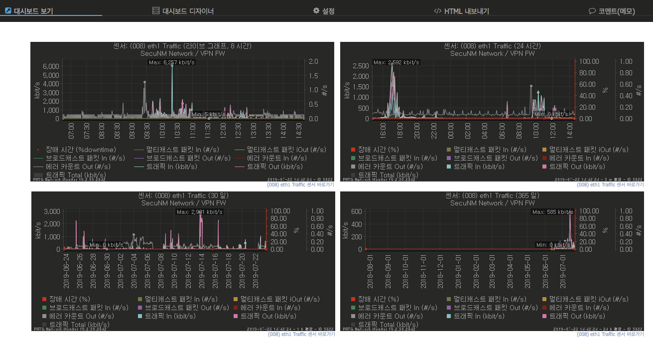 PRTG 사용자의 친숙한 화면인 그래프 모듈의 대시보드 페이지 뷰 입니다.