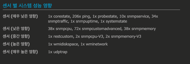 참고로, 이런 성능 영향은 센서 추가 시, 센서타입의 하단에도 확인하실 수 있습니다.