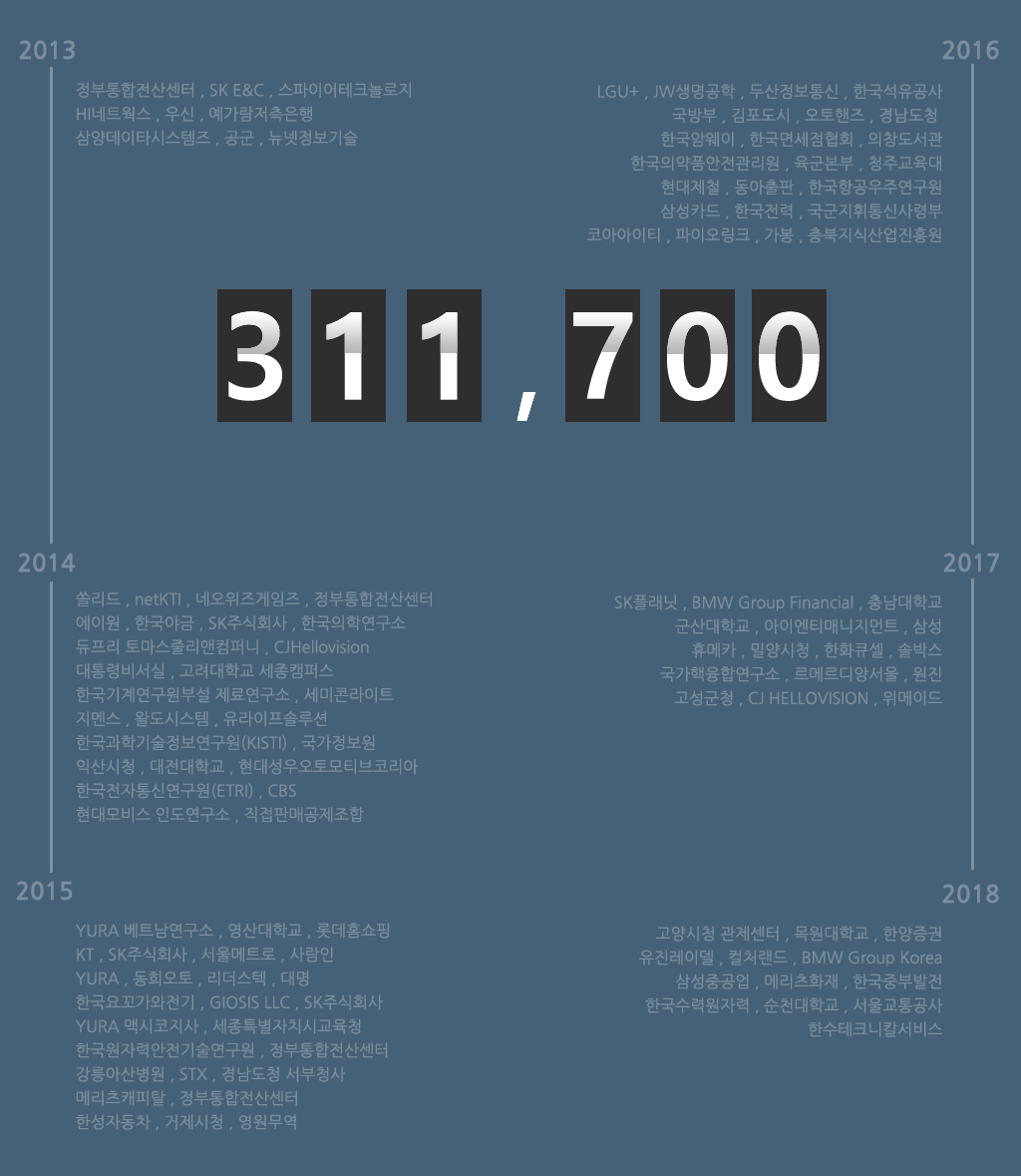 이는 당사의 지속적인 노력도 있겠지만, 무엇보다 당사의 기술적 지원 사항과 파트너쉽을 믿고 함께해주신 고객사의 응원과 격려가 있기에 가능한 사항이 아닌가 싶습니다.